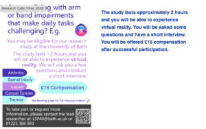 | Lauren Pocock | Virtual Reality Research Project – Arm and Hand Impairments | ![]() | lsp40@bath.ac.uk org |